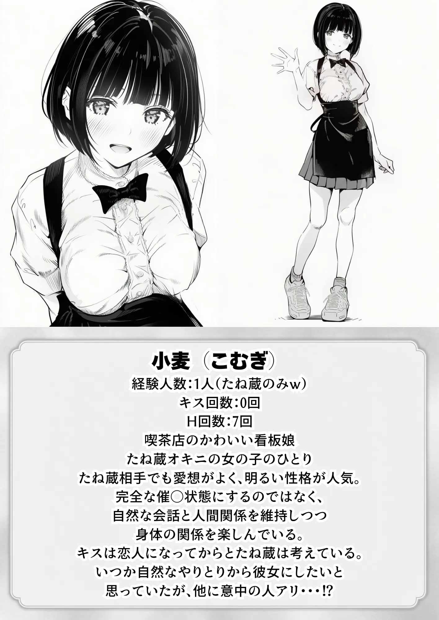 AIイラストの特性上、矛盾した場面(服装や髪型・体型など)はありますが、